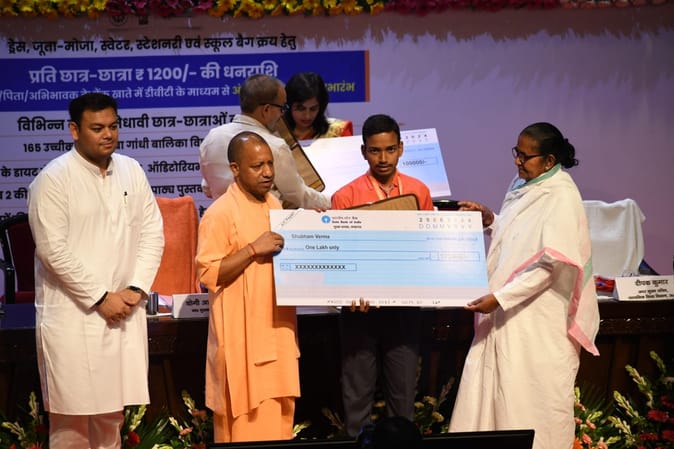 मुख्यमंत्री योगी आदित्यनाथ ने शनिवार को लखनऊ के लोकभवन में आयोजित मेधावी सम्मान समारोह कार्यक्रम में 88 लाख बच्चों के लिए 1056 करोड़ की राशि जारी की। यह राशि डीबीटी के माध्यम से सीधे अभिभावकों के खाते में चली गई। इसके तहत हर बच्चे को 1200 रुपये दिए गए।